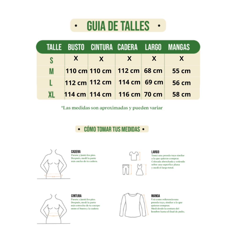 Talle: M, L y XL (consultá la guía de talles).