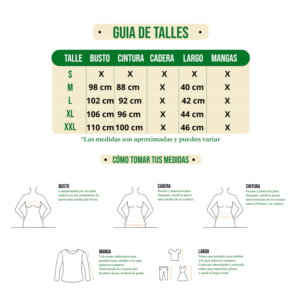 Talles: M, L, XL y XXL ( Ver guía de talles)