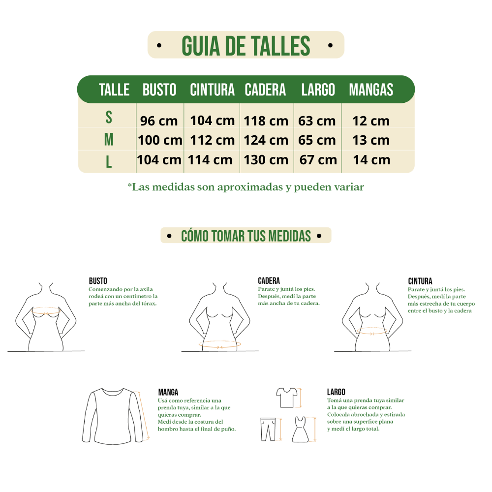 Talle S, M y L (Ver guía de talles)